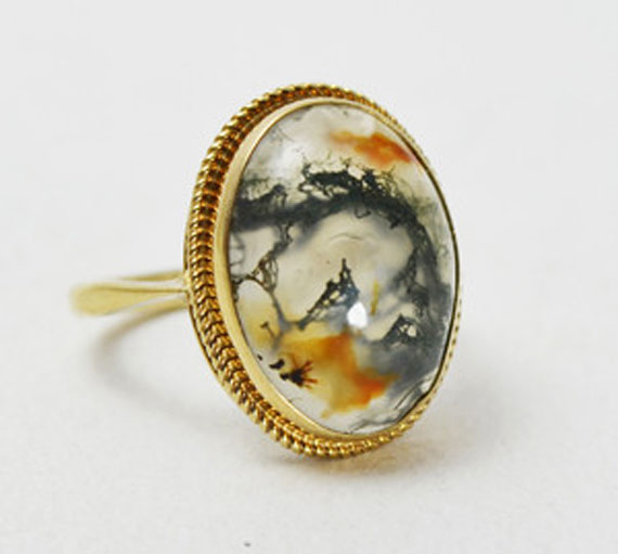 مدل انگشتر با سنگ عقیق خزه ای بی نظیر