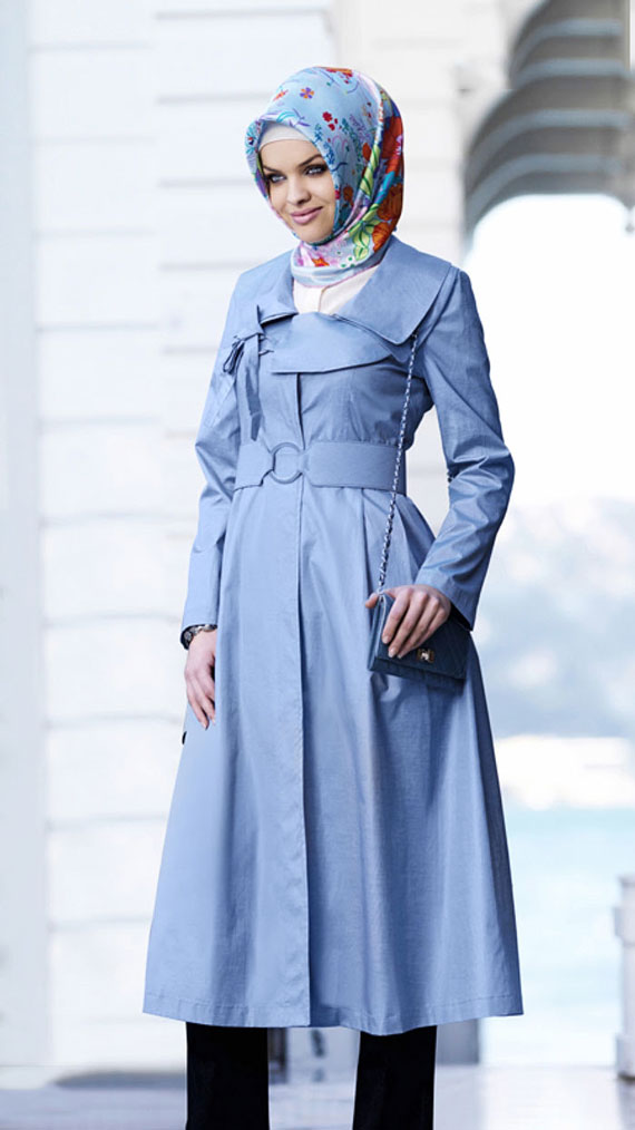 مدل مانتو با حجاب اسلامی آبی قشنگ
